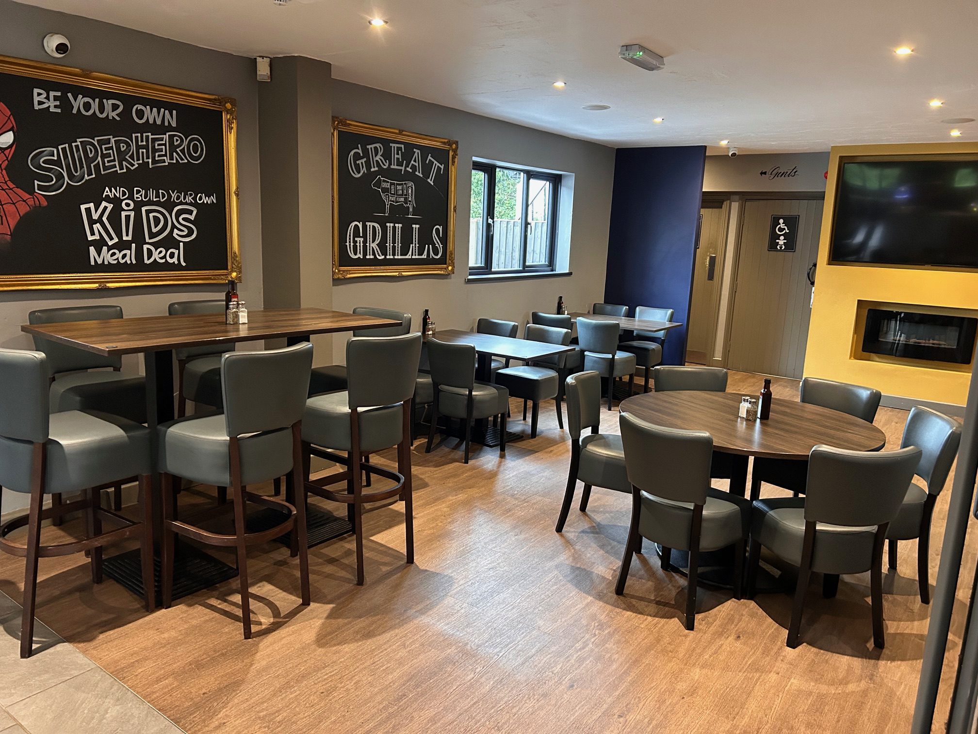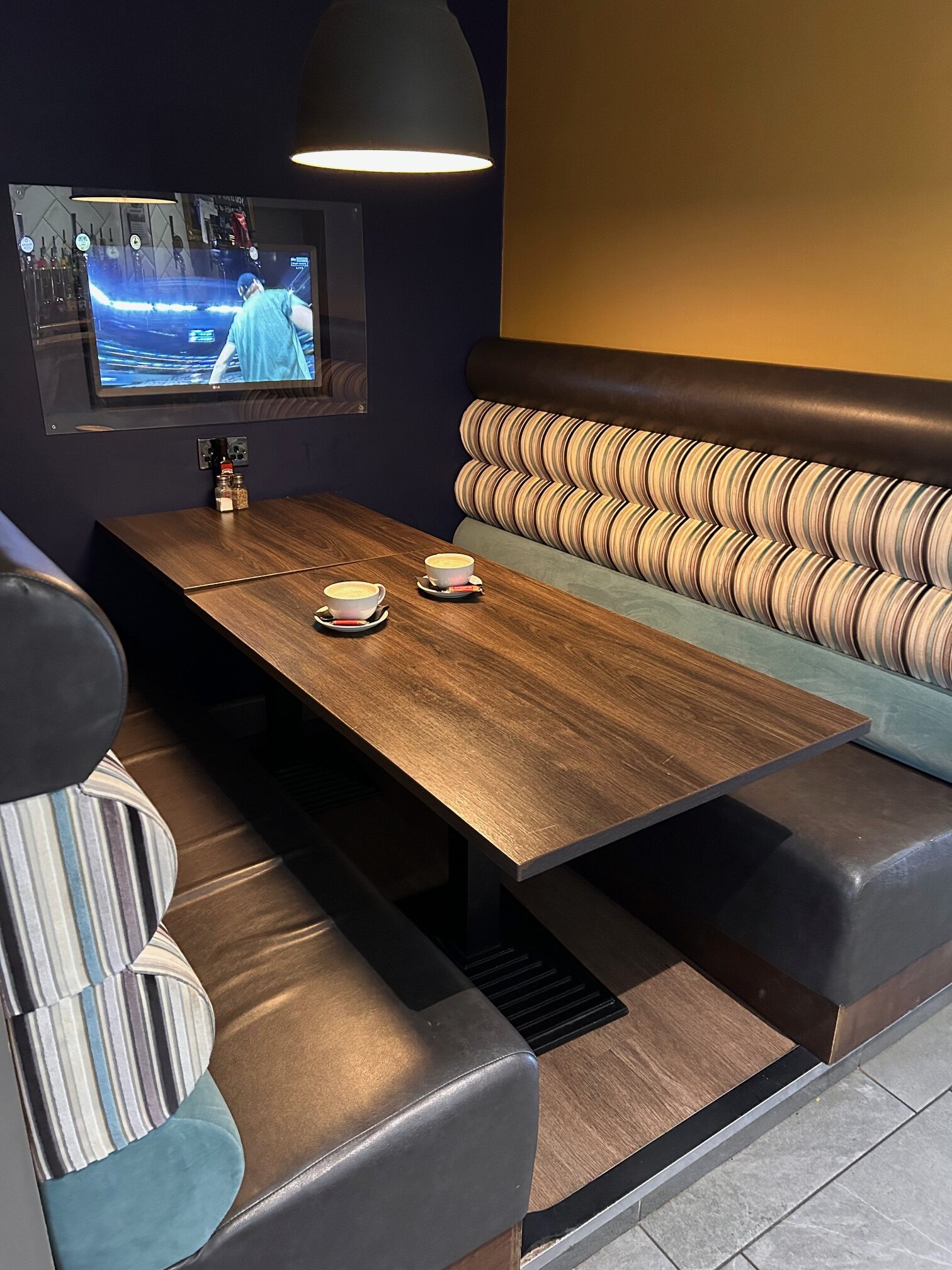 Inside you will find sleek, modern decor, including large booths with TV's showing sport and family entertainment, plus extensive restaurant seating and a very well stocked bar area... including a coffee machine for barista style hot drinks.